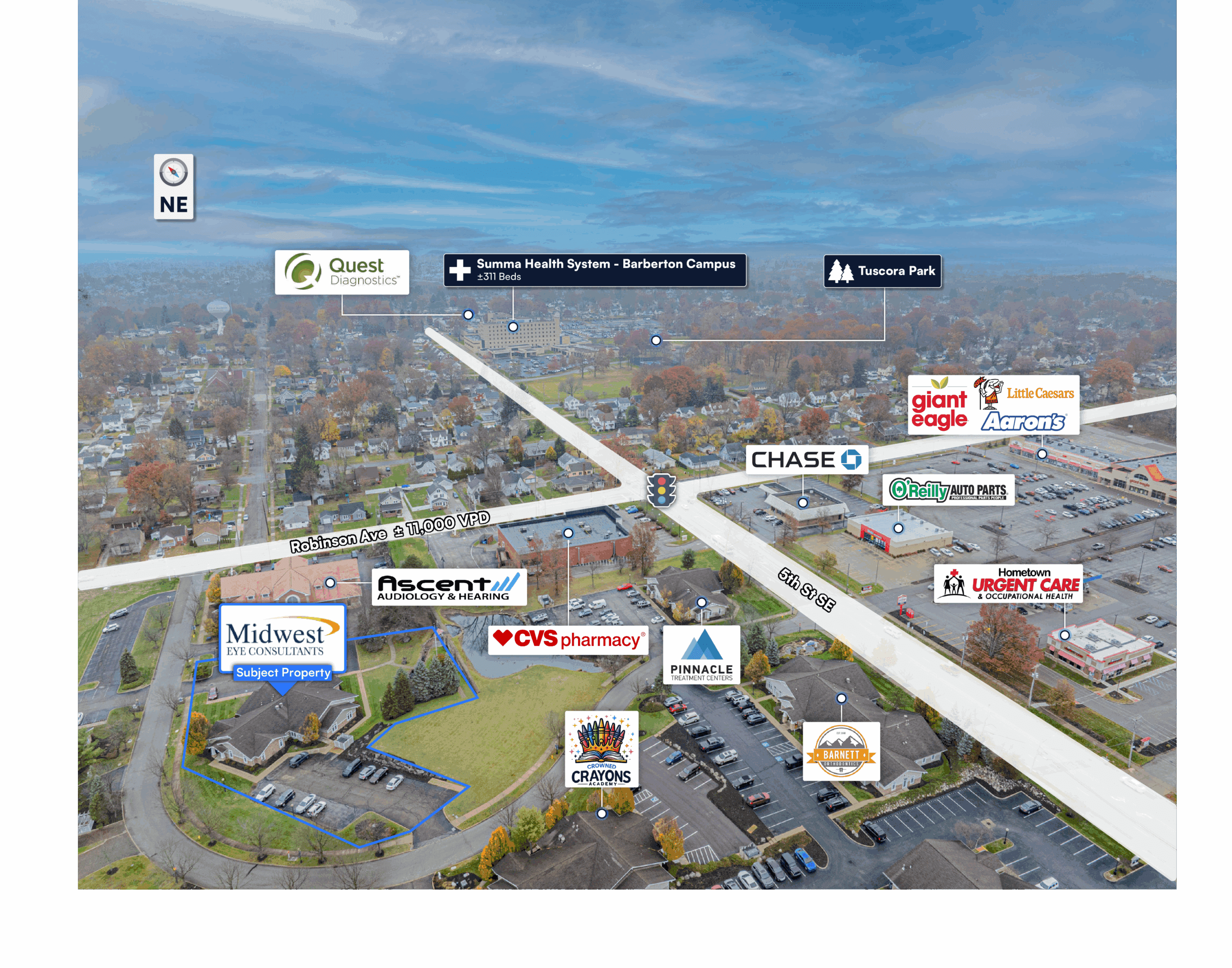 Located in Medical Corridor Near Summa Health System Barberton Campus: The property is strategically located less than a mile from the Summa Health System Barberton Campus. The 178-bed hospital has a 24-7 emergency room and serves as a hub for medical treatment in the area.
