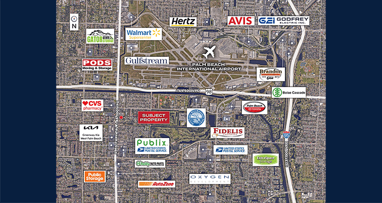 Exceptional Location – Fronting S Military Trail, one of Palm Beach County’s busiest commercial corridors with ±46,000 vehicles per day, the property offers unmatched visibility and signage potential. Located just minutes from Palm Beach International Airport (PBI) and major arterial roadways like Southern Boulevard, this site provides strategic access to regional logistics, labor, and consumer hubs—ideal for distribution, service, and flex-industrial users.