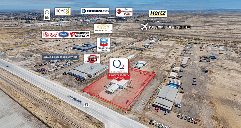 Passive Industrial NNN / 3% Annual Increases – Q2 Artificial Lift Services occupies this site under an Industrial NNN lease offering passive income and limited landlord responsibilities. The lease is structured with scheduled 3% annual rent escalations allowing a strong hedge against inflation.