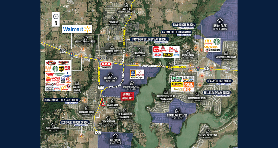• Located at the entry/exit of Cross Oak Ranch (2,064 lots) & Prairie Oaks (833 lots)