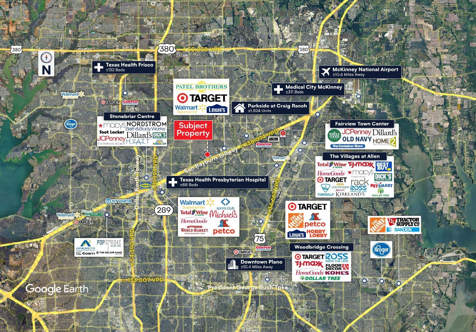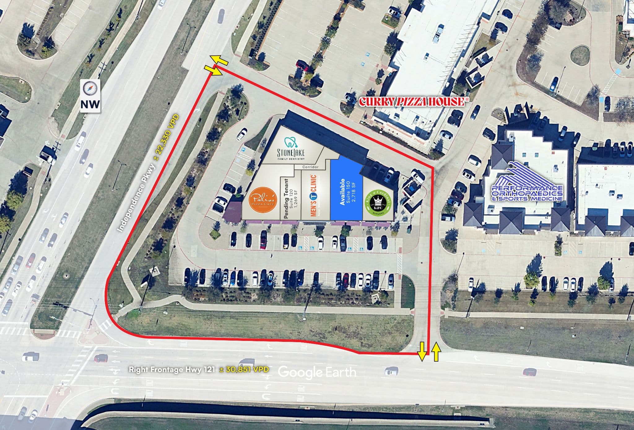 High Visibility & Access: Located just off the Sam Rayburn Tollway (±104,391 VPD) with visibility from SH-121 and Independence Pkwy (±42,700 VPD combined). Multiple ingress/egress points provide convenient access and strong exposure.