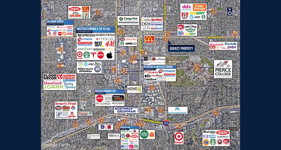 • National Tenants nearby include McDonald’s, Jack In The Box, Yum Yum Donuts, Wingstop, and Westfield Topanga