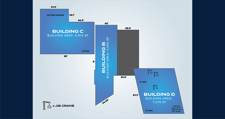 Five grade-level doors with heavy power capacity allow for loading efficiency and intensive industrial operations.