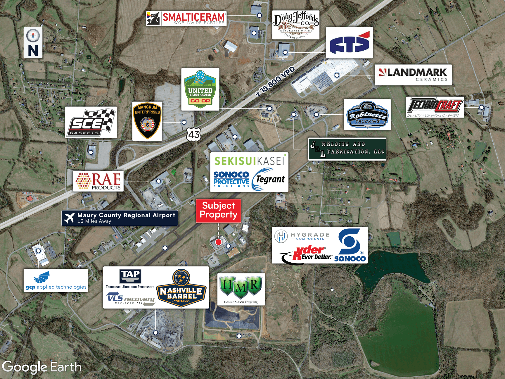 LOCATION ADVANTAGES Situated in the Mt. Pleasant industrial corridor with strong access to U.S. Highway 43 and I-65, providing connectivity to Nashville, Columbia, and regional markets.