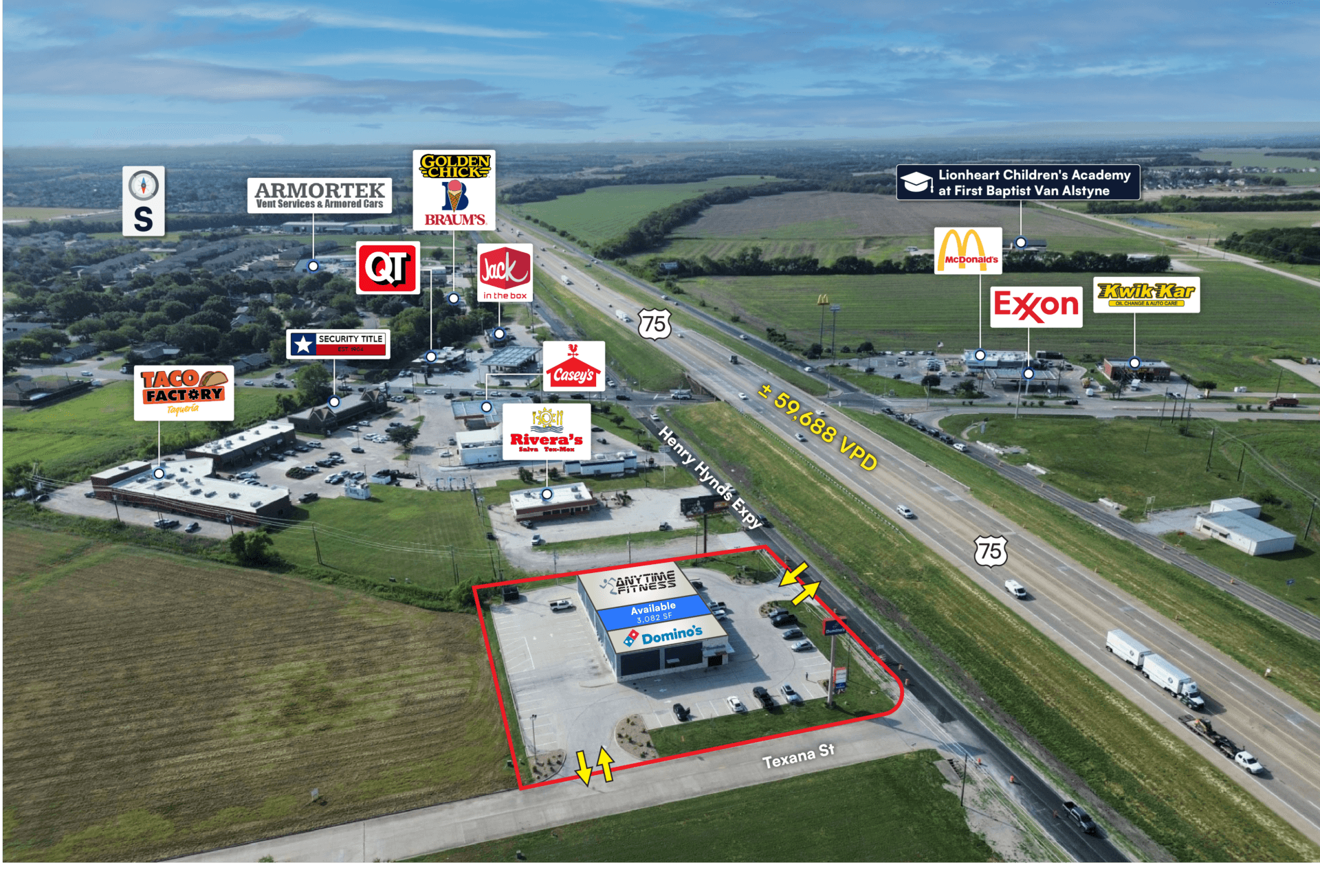 • Direct frontage on US-75 with pylon signage visibility