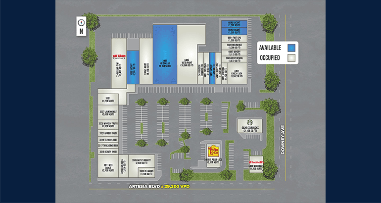 • Join Tenants such as Starbucks, El Pollo Loco, The Camp, Vista Paint and many more!