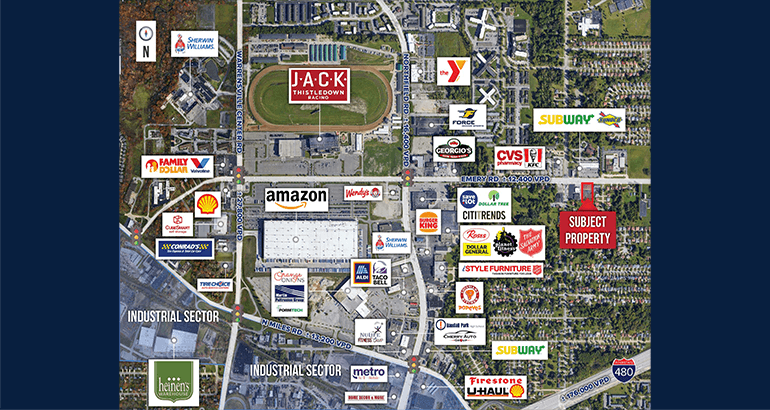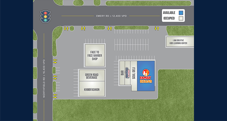 7,250 SF former Family Dollar is located on Emery Road in Warrensville Heights, offering excellent visibility and high traffic with 28,800 VPD at Emery and Green Road.