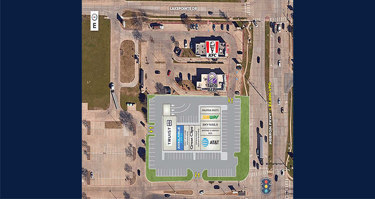 Great access and visibility at a high-traffic, regional intersection of I-35 and Hebron Parkway.