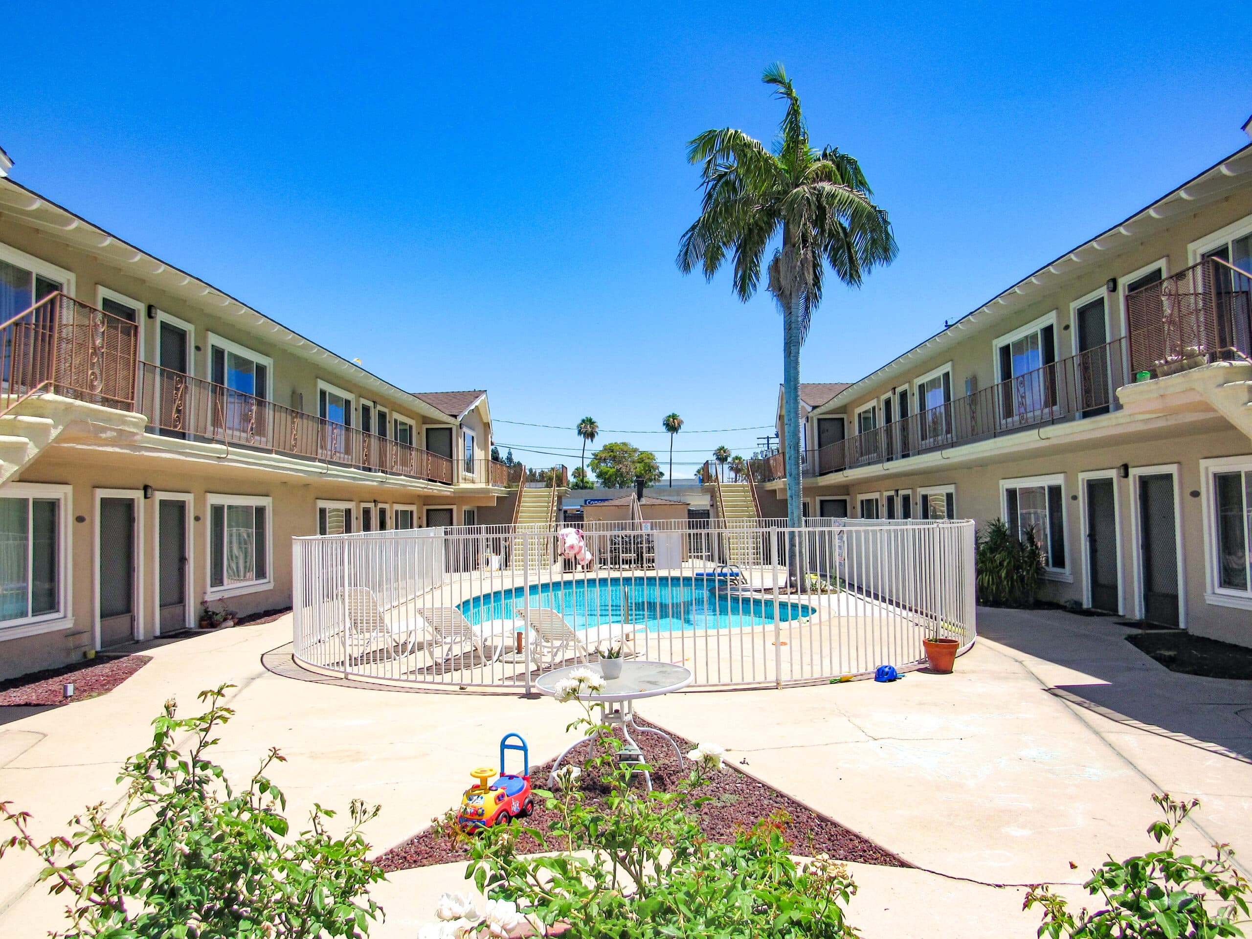 Garden style, two story walkup construction located in a strong city of Anaheim rental location, with excellent curb appeal.
