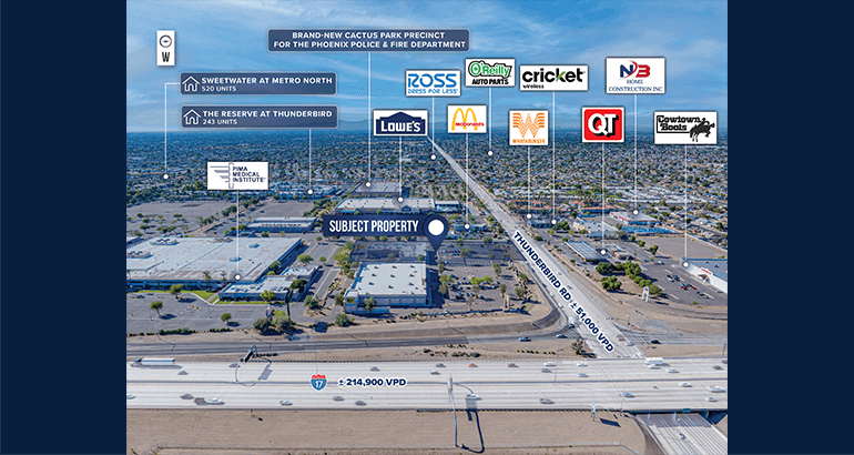 Strong Traffic Counts: Best Buy Shops is subject to very high traffic counts with over ±51,000 VPD crossing Thunderbird Road and over ±214,900 VPD crossing the I-17.