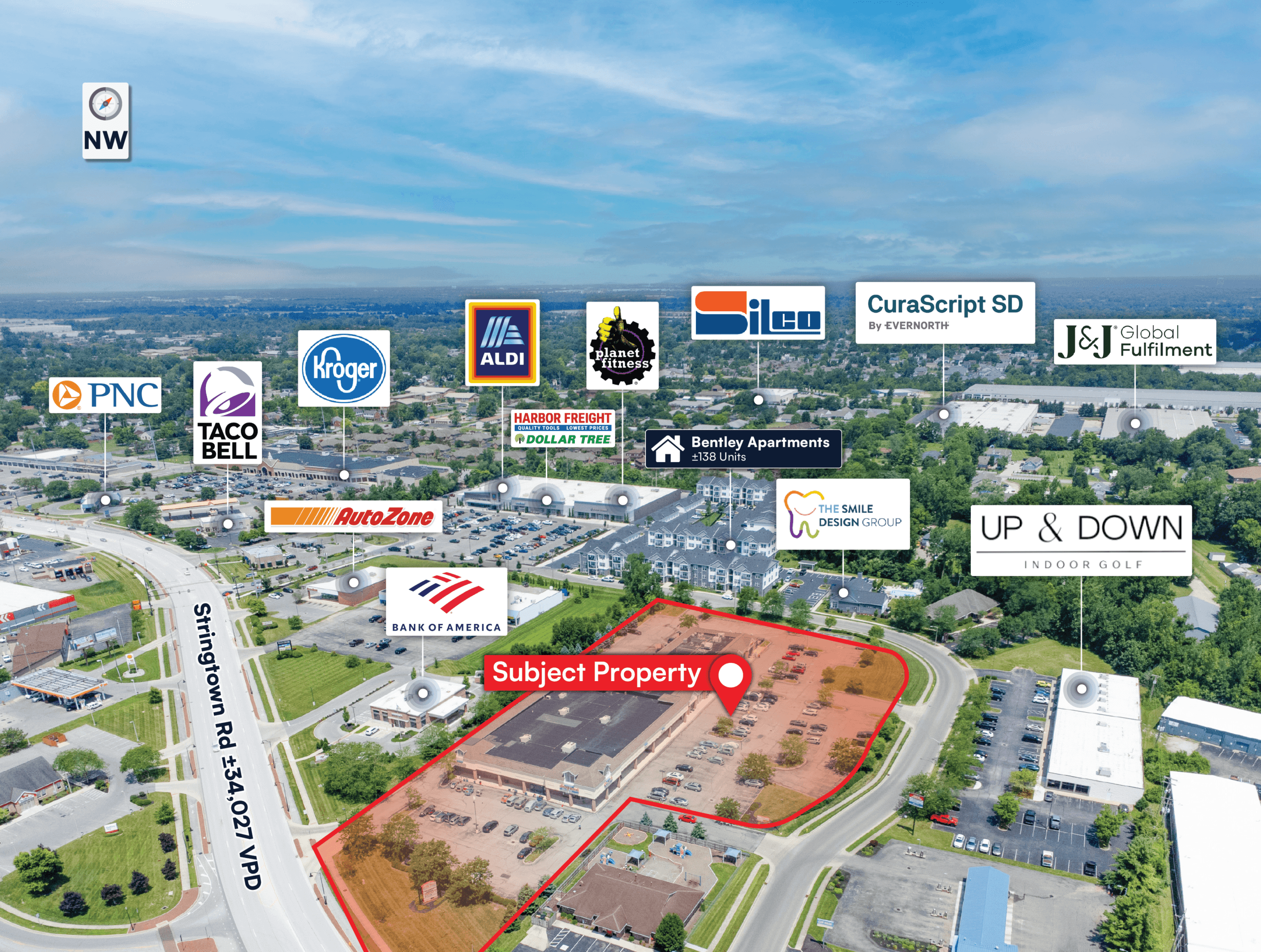 Prime Retail Corridor: Located at signalized intersections along Stringtown Rd (±34,027 VPD), less than 1 mile from I-71 (±100,826 VPD).