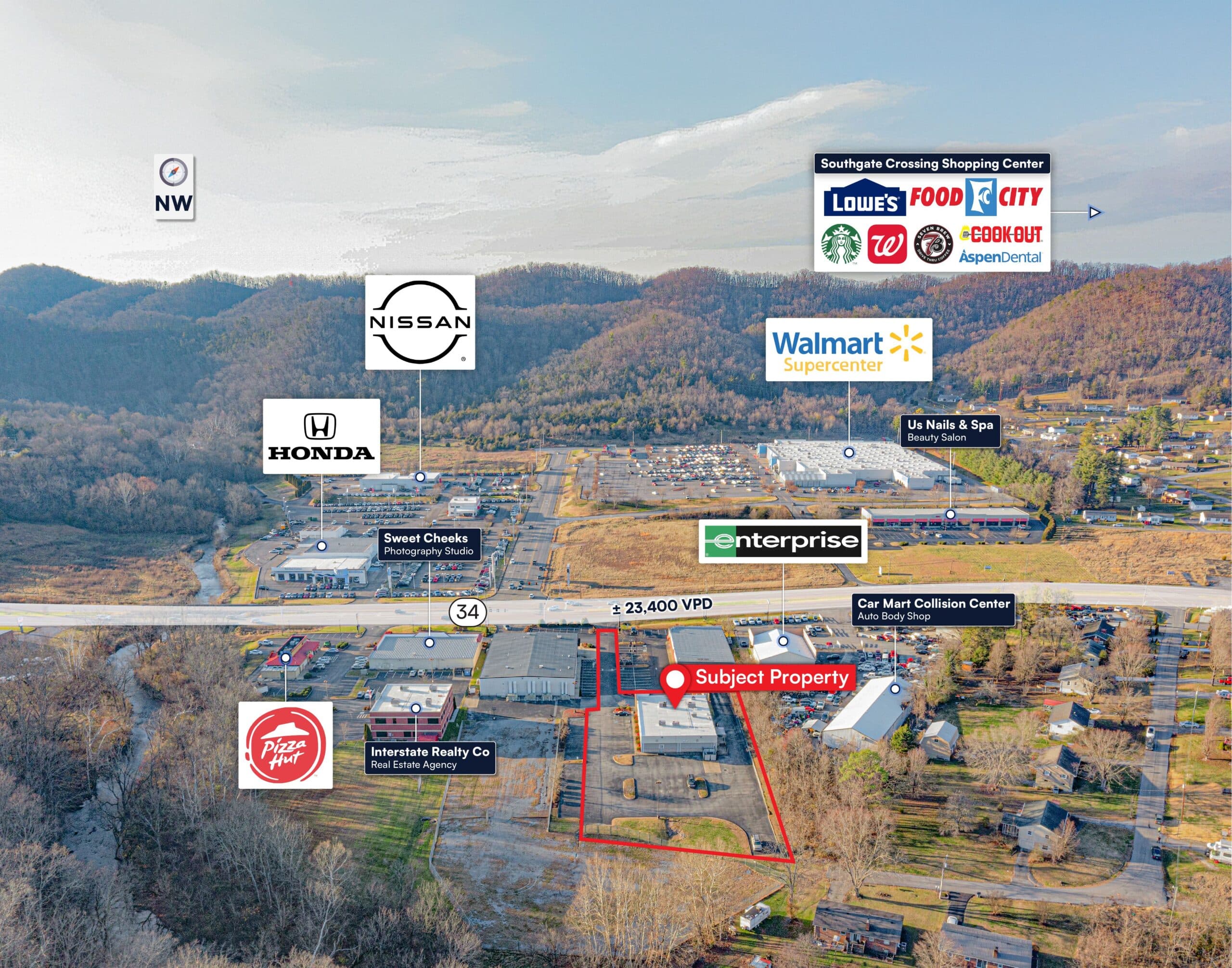 Attractive Retail Design – Shops of Volunteer Pkwy features prominent signage, ample parking, and high visibility, ideal for tenant success and consumer convenience.