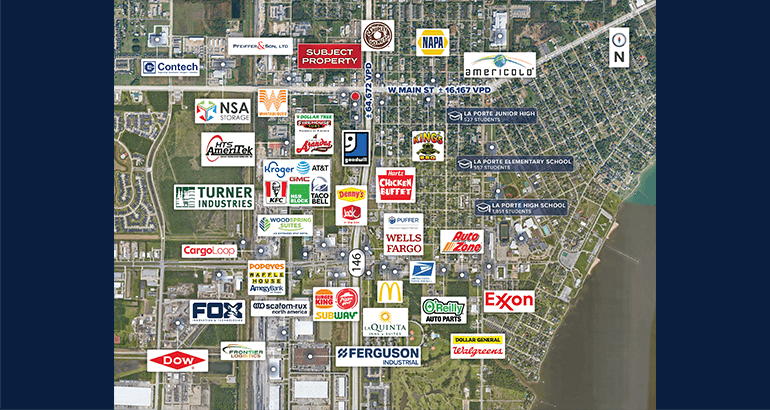 - Located at the hard corner 4-way signalized intersection along Texas State Highway 146 with outstanding visibility and ±80,839 vehicles per day (VPD)