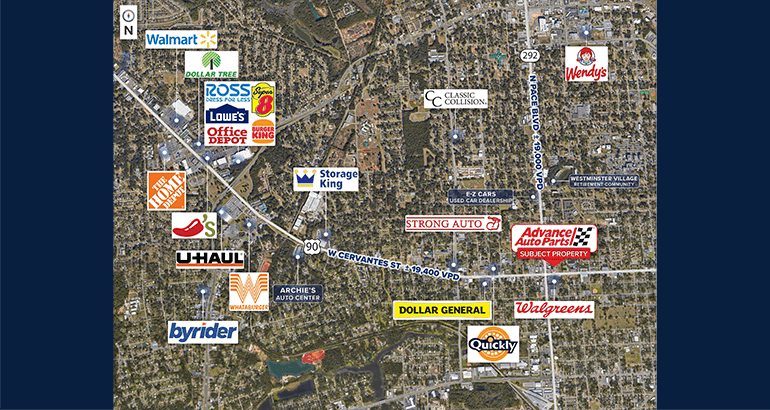 Prime Frontage on a High-Traffic Corridor: The property boasts 150 feet of frontage along Pace Boulevard, one of Pensacola’s busiest commercial corridors, ensuring excellent visibility and accessibility.