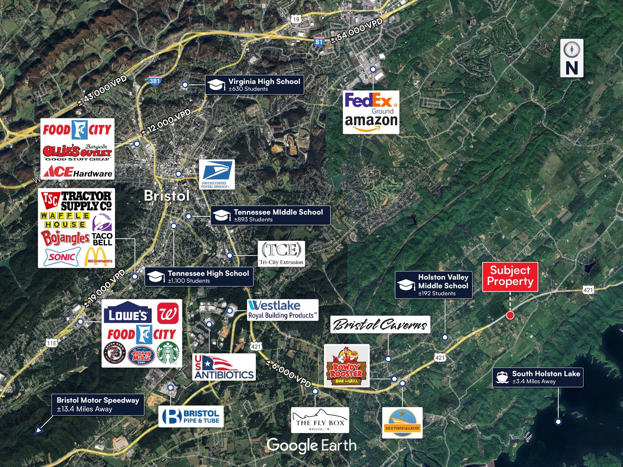 Tourism and Event Traffic – Proximity to Bristol Motor Speedway and regional attractions ensures consistent consumer traffic and economic activity.