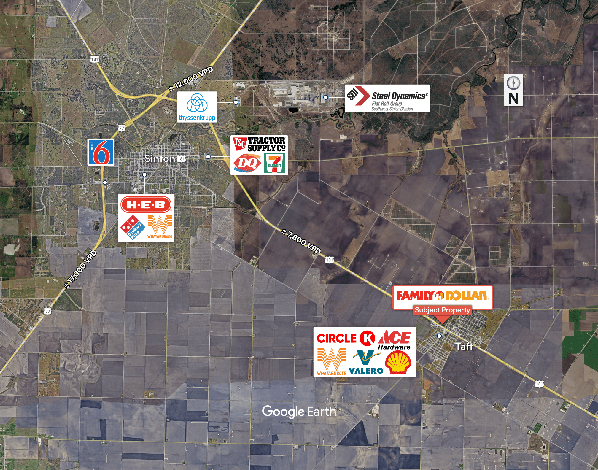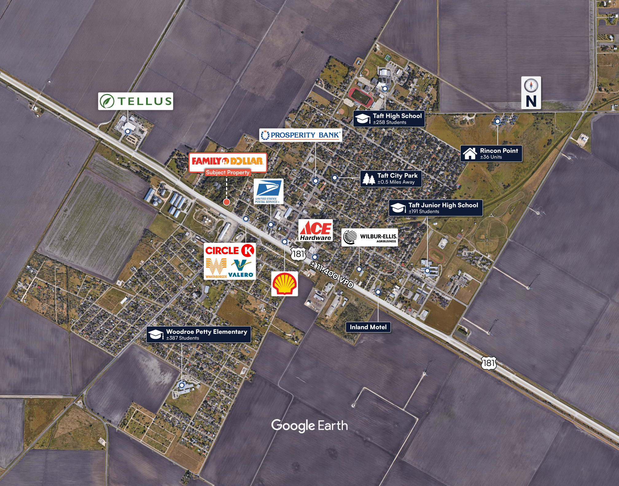 Prime South Texas Location: Taft is located in south Texas, just 20 minutes north of Corpus Christi—positioned in a growing corridor with access to major employment, residential, and commuter traffic from the Coastal Bend region.