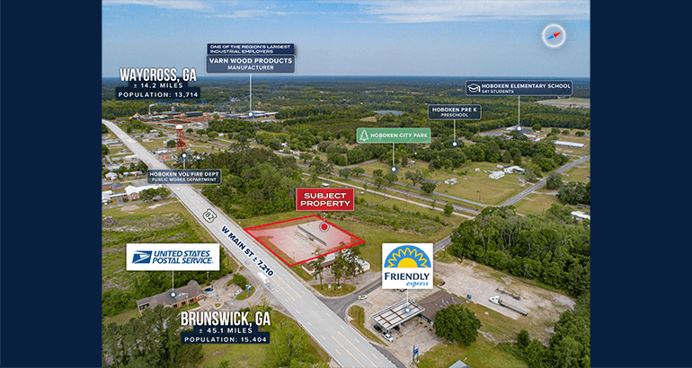 Strategically located along W Main Street (Route 82), just 11 miles east of Waycross and 35 miles west of Brunswick, GA, the property benefits from steady consumer traffic traveling between the two markets. Route 82 serves as a primary thoroughfare in southeast Georgia, connecting Brunswick to surrounding inland communities.