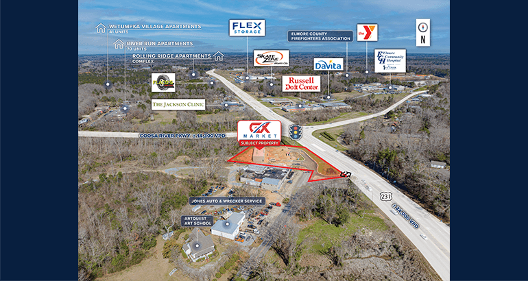 - Located at the intersection of Coosa River Pkwy (±14,300 VPD) & SR-231 (±24,000 VPD)