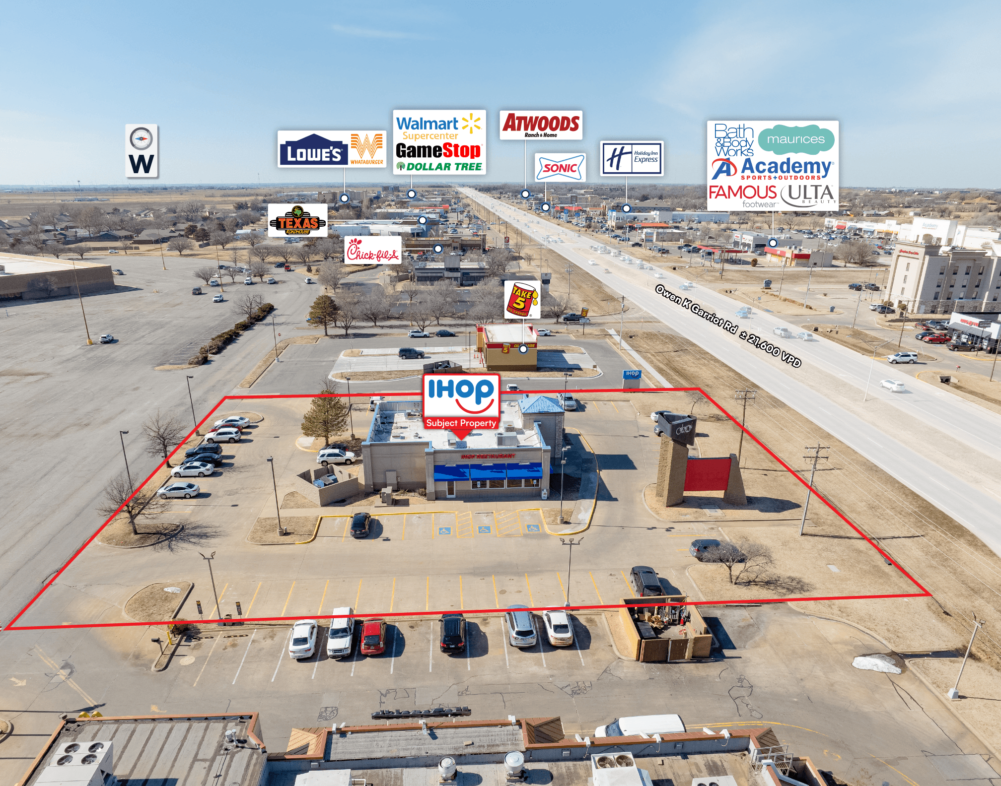 Strong Retail Synergy & Traffic: Positioned in a robust retail corridor with over 21,000 vehicles per day (VPD) and surrounded by national tenants including Harbor Freight, Tractor Supply Co., Chick-fil-A, Take 5 Oil Change, Academy Outdoor Sports, McDonald’s, Popeyes, Walgreens, Walmart Supercenter, Lowe’s Home Improvement, and more.