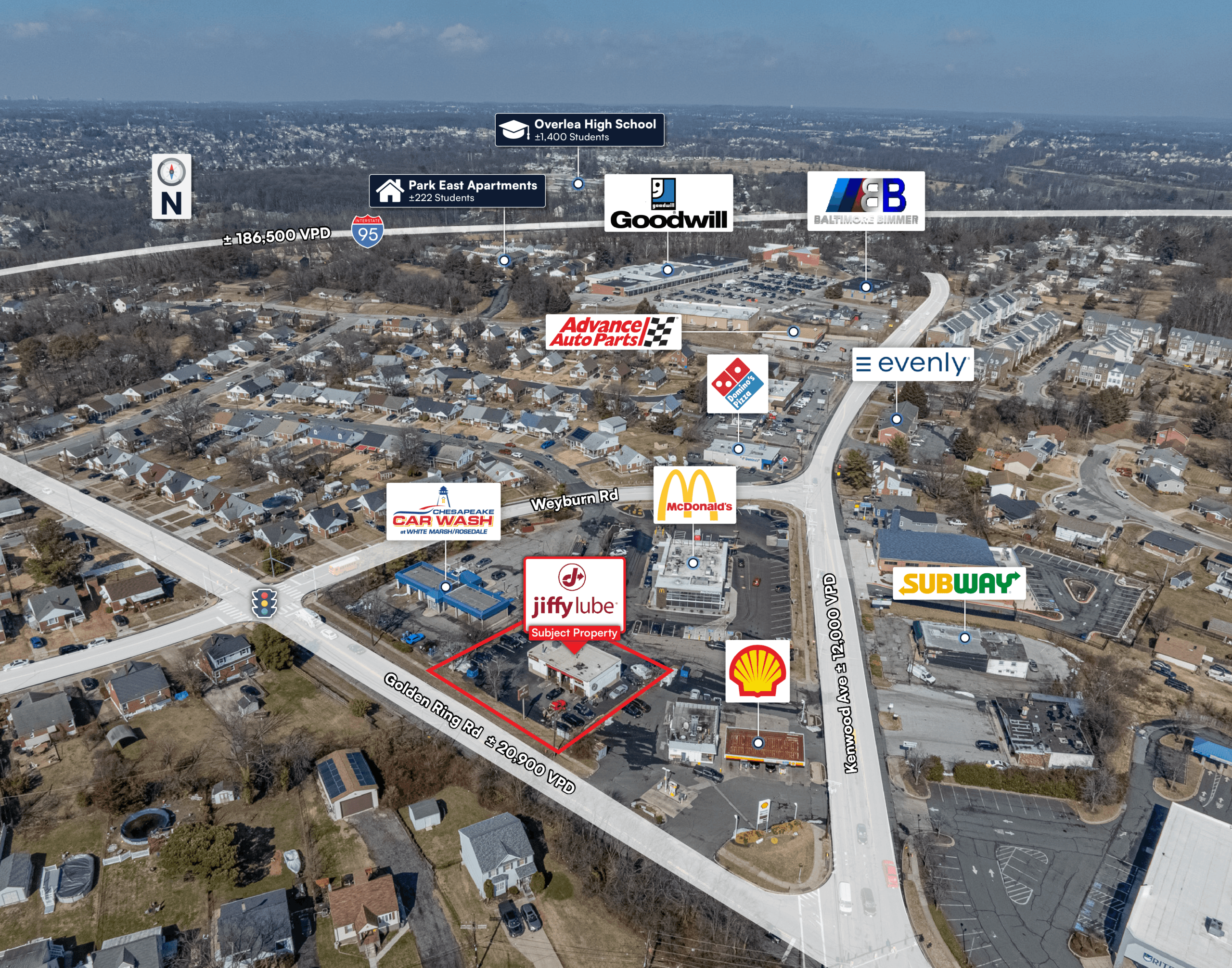 Strong Retail Synergy: Located in proximity to established national retailers including McDonald’s, Shell, Chesapeake Car Wash, Subway, and Domino’s, driving consistent consumer traffic and cross-shopping activity.