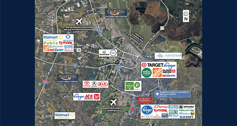 Strong demographics and strategic location – The property serves a dense trade area of ±148,885 residents within a ±1-mile radius, with average household incomes approaching $89,792. Its proximity to Hunter Army Airfield and position within one of Savannah’s premier retail corridors drive consistent foot traffic and strong cross-shopping patterns.
