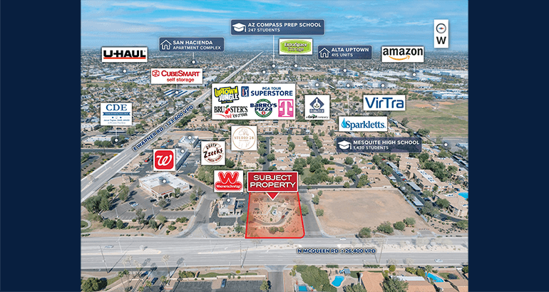 - Situated just north of the McQueen Rd and Warner Rd intersection, this site offers outstanding visibility and exposure to over 50,000 vehicles per day. With convenient access from McQueen or Warner Rd, it’s an ideal location for a brand looking to maximize presence in a high-demand trade area.
