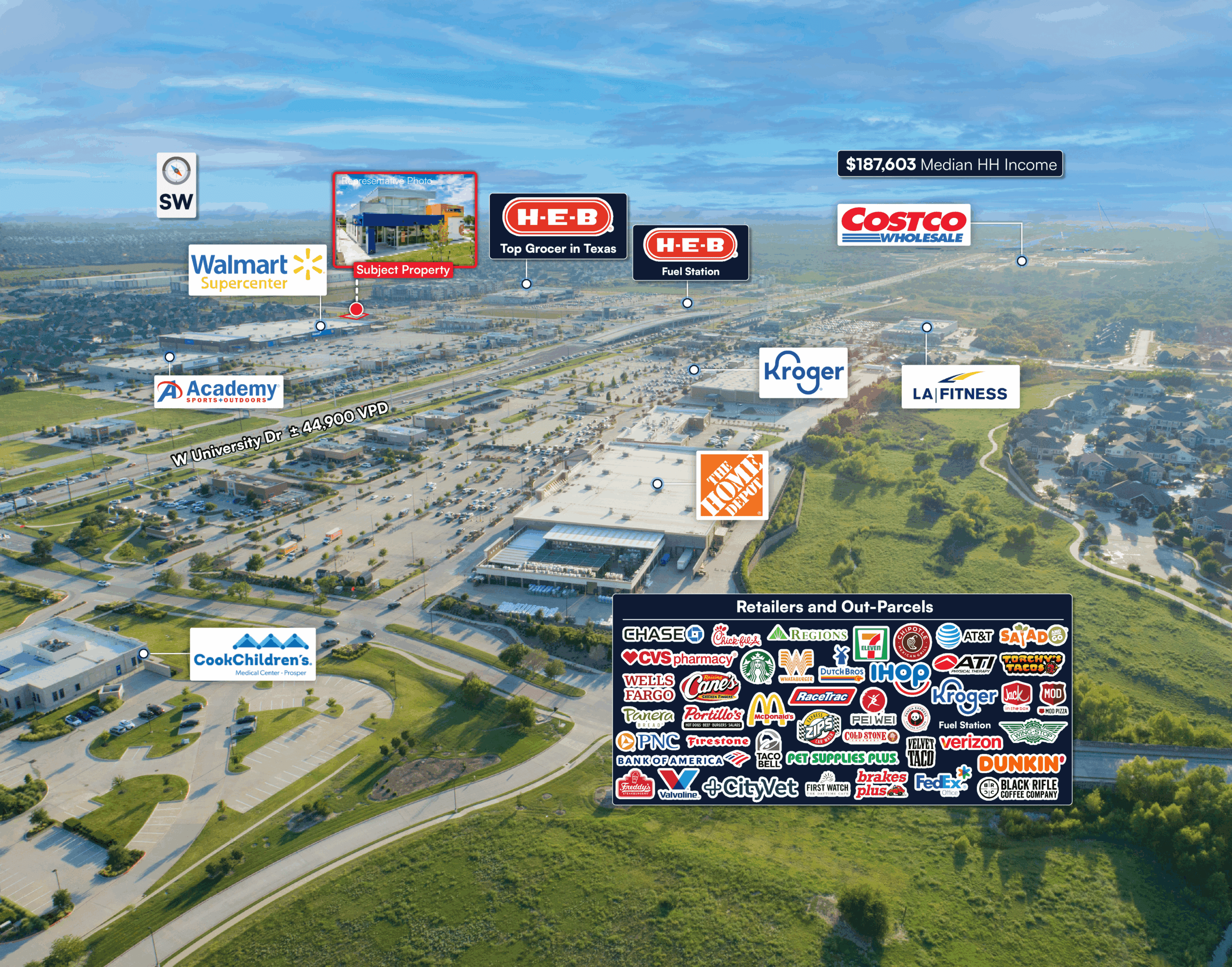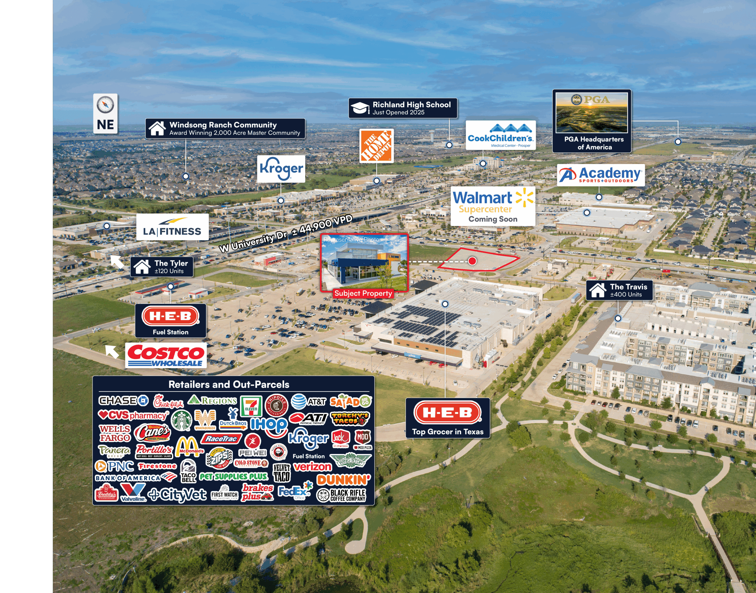 North Neighbor: Kroger Marketplace, The Home Depot, Cook Children’s Medical Center, and an LA Fitness.