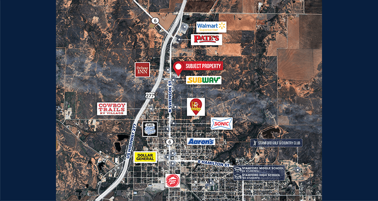 Retail Corridor – Nearby national tenants include Dollar General, Walmart Supercenter, Subway, Sonic, Pizza Hut, Aaron’s, and more.